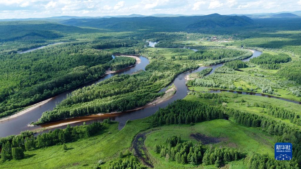 2022年7月7日拍攝的內(nèi)蒙古滿歸貝爾茨河國家濕地公園夏日風(fēng)光(無人機(jī)照片)。新華社記者 貝赫 攝
