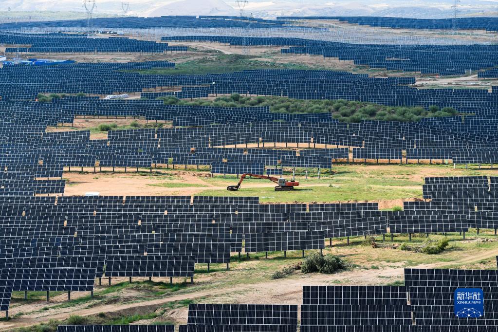 2021年7月13日在內(nèi)蒙古鄂爾多斯市伊金霍洛旗拍攝的天驕綠能50萬千瓦光伏發(fā)電項(xiàng)目(無人機(jī)照片)。該項(xiàng)目是采煤沉陷區(qū)生態(tài)治理光伏發(fā)電的示范項(xiàng)目。新華社記者 劉磊 攝