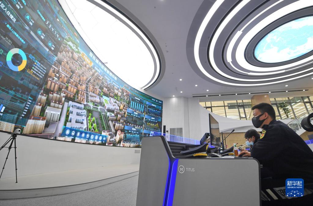 工作人員在雄安新區(qū)容東城市運(yùn)營(yíng)管理中心監(jiān)管平臺(tái)工作(2022年3月29日攝)。新華社記者 朱旭東 攝