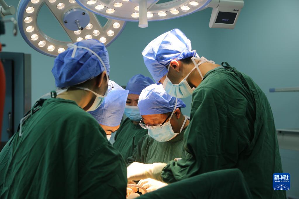在甘肅省定西市人民醫(yī)院手術(shù)室,醫(yī)生在做手術(shù)(2022年9月10日攝)。新華社發(fā)(王克賢 攝)