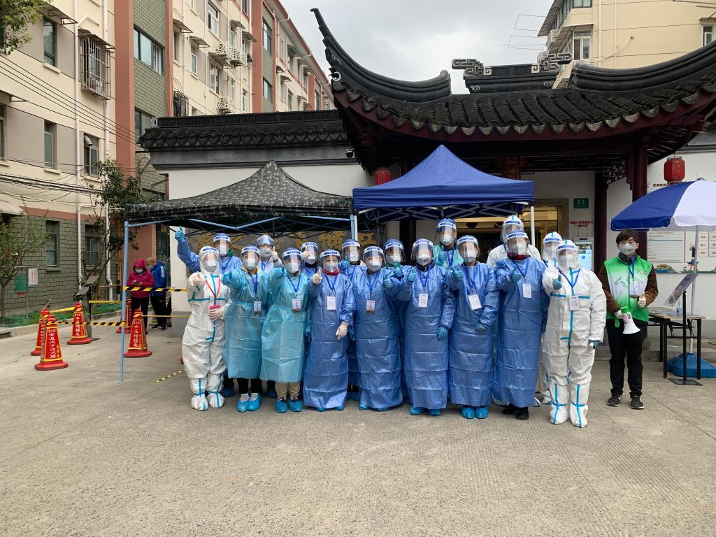 虹儲(chǔ)居民區(qū)核酸檢測采樣點(diǎn),黨員干部、醫(yī)務(wù)工作者以及來自各行各業(yè)的志愿者共同抗疫。受訪單位供圖