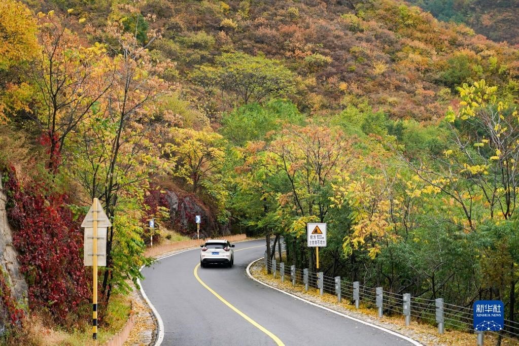 10月2日,游客駕車行駛在百花山國(guó)家級(jí)自然保護(hù)區(qū)秋景。新華社記者 彭子洋攝