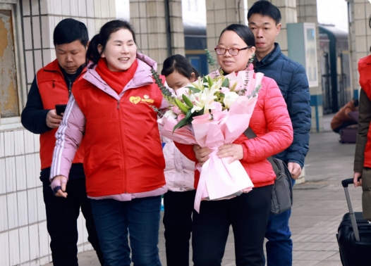 “列車即將到站。”3月1日早上7時25分,春華帶著丈夫和孩子乘坐的K1080次列車即將抵達(dá)赤壁,赤壁火車站廣播響起播報,緊張的她走到車門處張望,她的親人也在火車站翹首盼望。7時30分,K1080次列車準(zhǔn)時到站,春華下車,奔向親人,緊緊相擁。