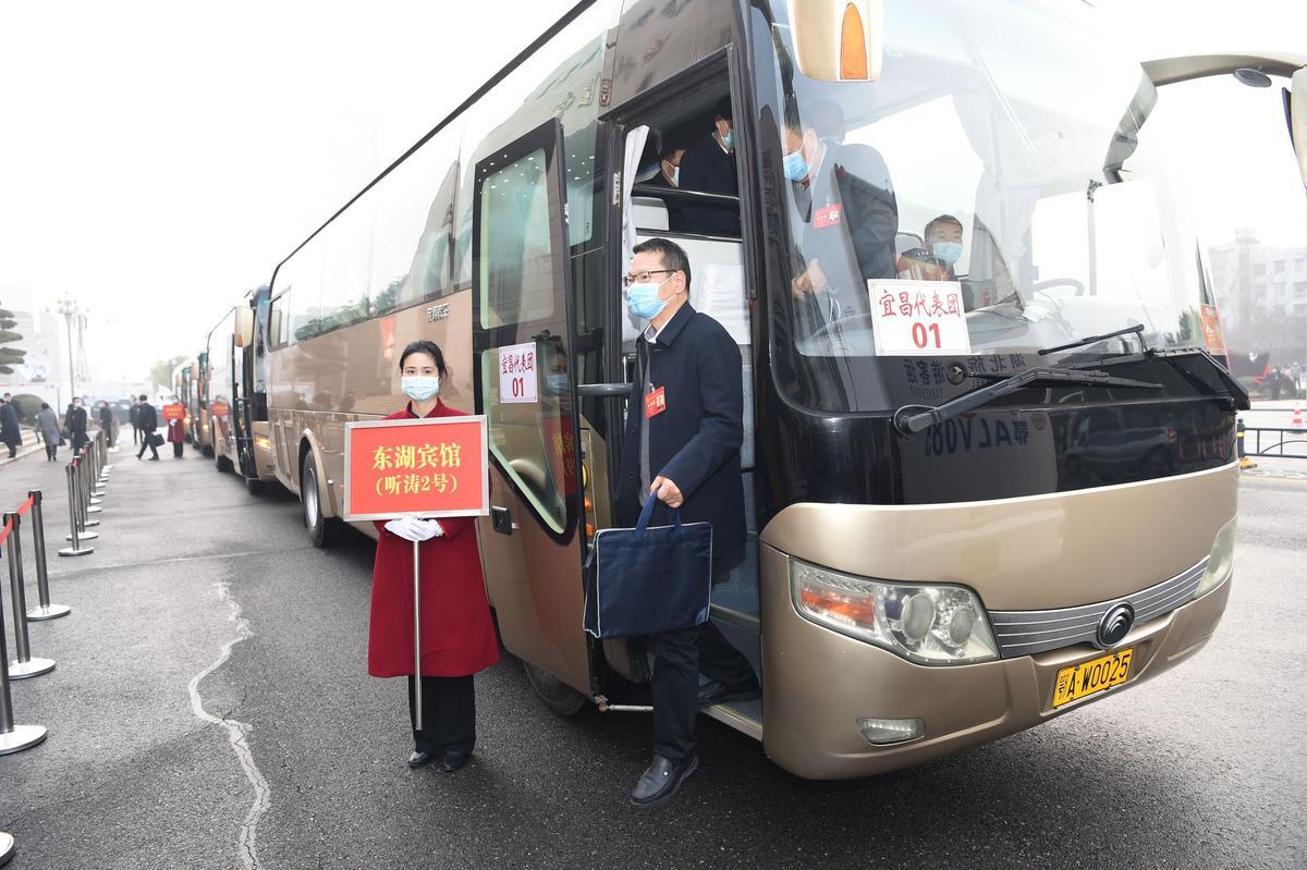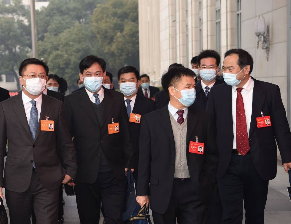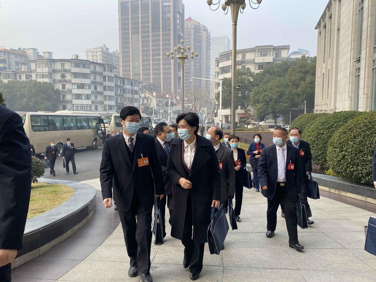 1月20日上午8時(shí)許,參加湖北省第十三屆人大七次會(huì)議開幕大會(huì)的代表、委員等抵達(dá)會(huì)場(chǎng)。(湖北日?qǐng)?bào)全媒記者李溪、柯皓攝)