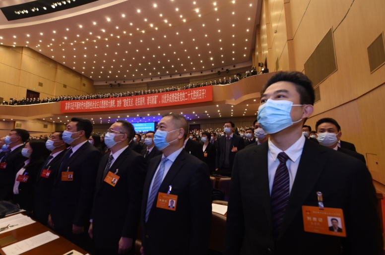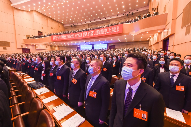 2022年1月20日上午,湖北省第十三屆人大七次會(huì)議開幕大會(huì)現(xiàn)場(chǎng)。(湖北日?qǐng)?bào)全媒記者何宇欣攝)