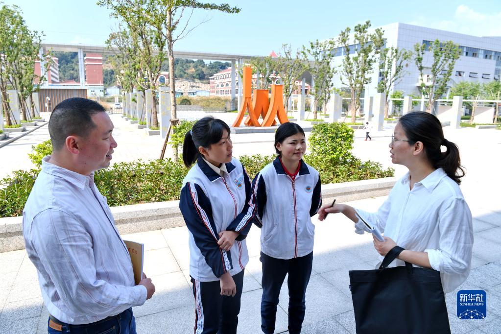 2019年10月24日,福建省福州市閩侯縣委巡察二組工作人員(右一)在閩侯縣職業(yè)中專學校了解中職補助資金發(fā)放情況。新華社記者 林善傳 攝