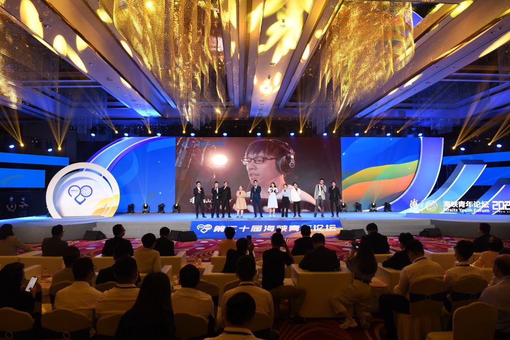臺灣青年在第二十屆海峽青年論壇上演唱歌曲(2022年7月12日攝)。新華社記者 林善傳 攝