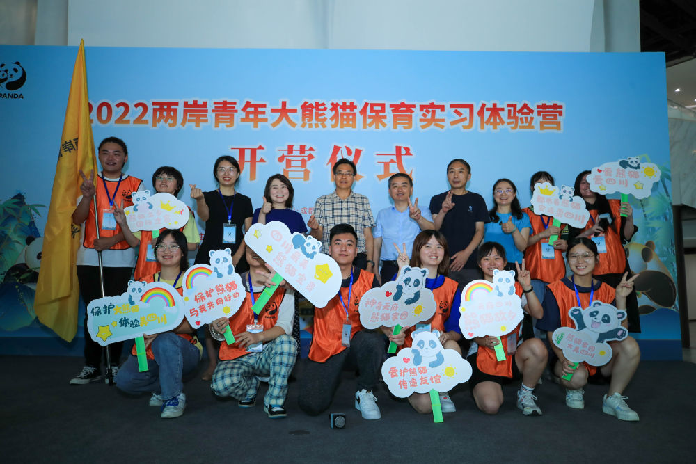 參與“2022兩岸青年大熊貓保育實習體驗營”的兩岸青年在開營儀式上合影(2022年7月11日攝)。新華社發(fā)(成都大熊貓繁育研究基地供圖)