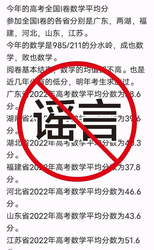 對(duì)此,江蘇、福建、廣東等多省辟謠,上述信息為假消息,他們從未公布各科平均分。