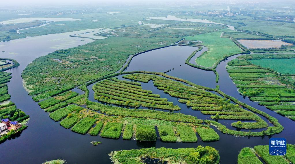 這是雄安新區(qū)白洋淀風(fēng)光(2021年8月14日攝,無(wú)人機(jī)照片)。?新華社記者 牟宇 攝