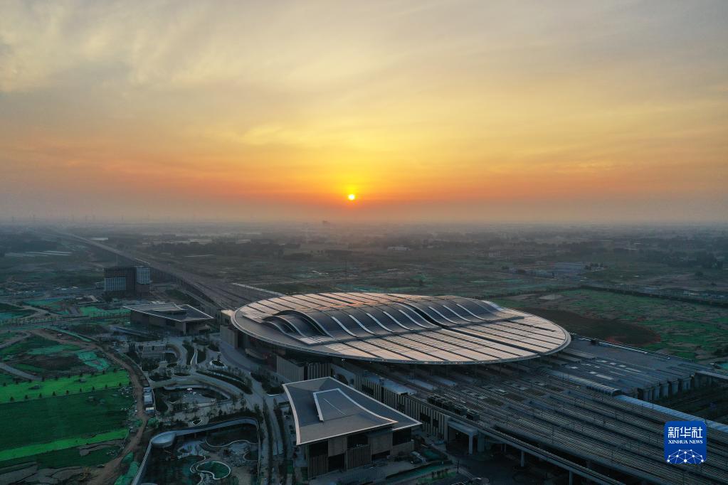 這是京雄城際鐵路雄安站(2021年7月1日攝,無(wú)人機(jī)照片)。?新華社記者 牟宇 攝