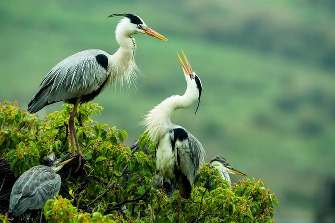 福建省羅源縣碧里鄉(xiāng)濂澳村后山的樹叢中,蒼鷺在嬉戲(2022年5月2日攝)。新華社記者梅永存攝