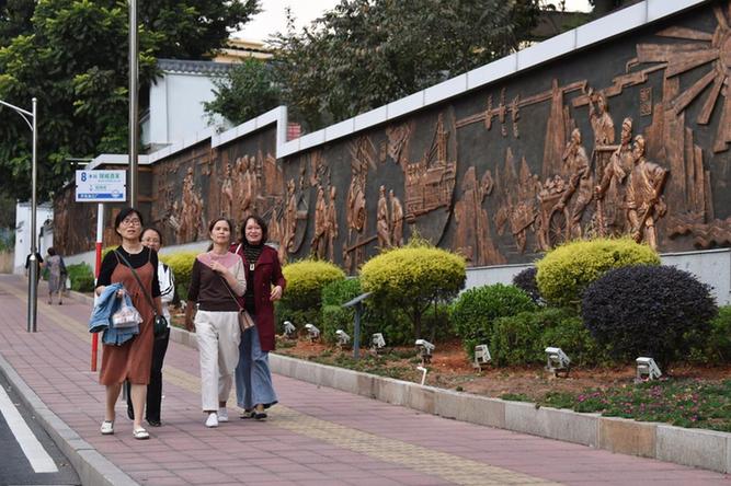 行人走過福建省三明市三鋼集團浮雕墻(2020年11月17日攝)。新華社記者姜克紅攝