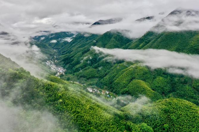 武夷山國家公園桐木村附近群山疊翠,云霧繚繞(2021年5月17日攝,無人機照片)。新華社記者姜克紅攝