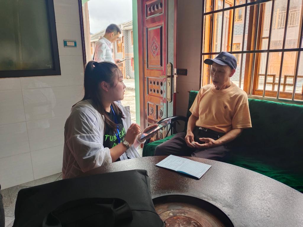 邱明君(左一)入戶走訪村民。(受訪者供圖)