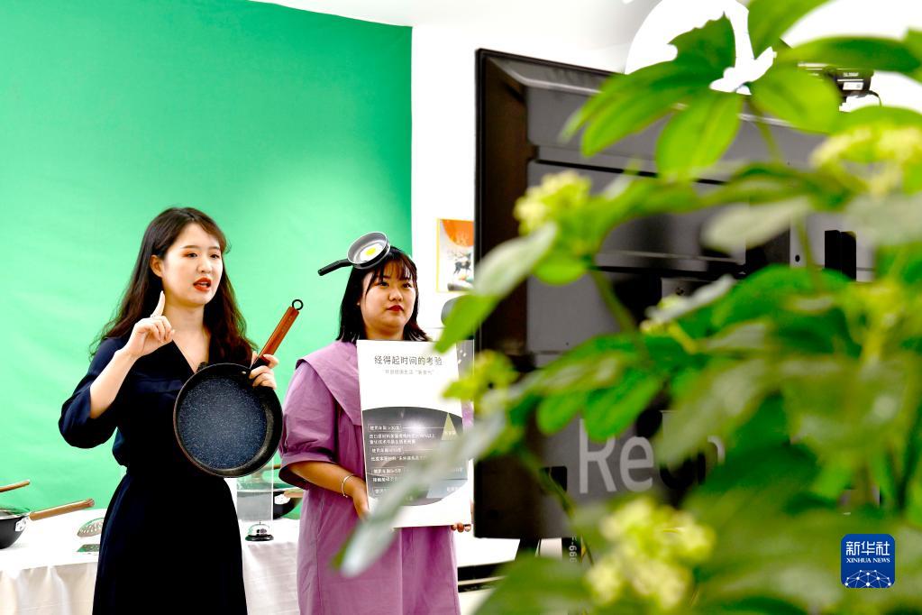 5月17日,在臨沂跨境電商直播基地,主播在直播帶貨。新華社記者 郭緒雷 攝