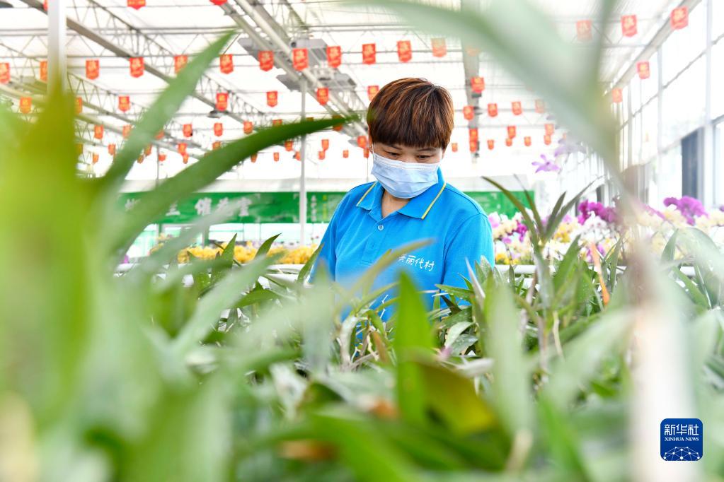 5月18日,在臨沂市蘭陵縣代村國(guó)家級(jí)現(xiàn)代農(nóng)業(yè)示范園,工作人員在打理蝴蝶蘭。新華社記者郭緒雷攝