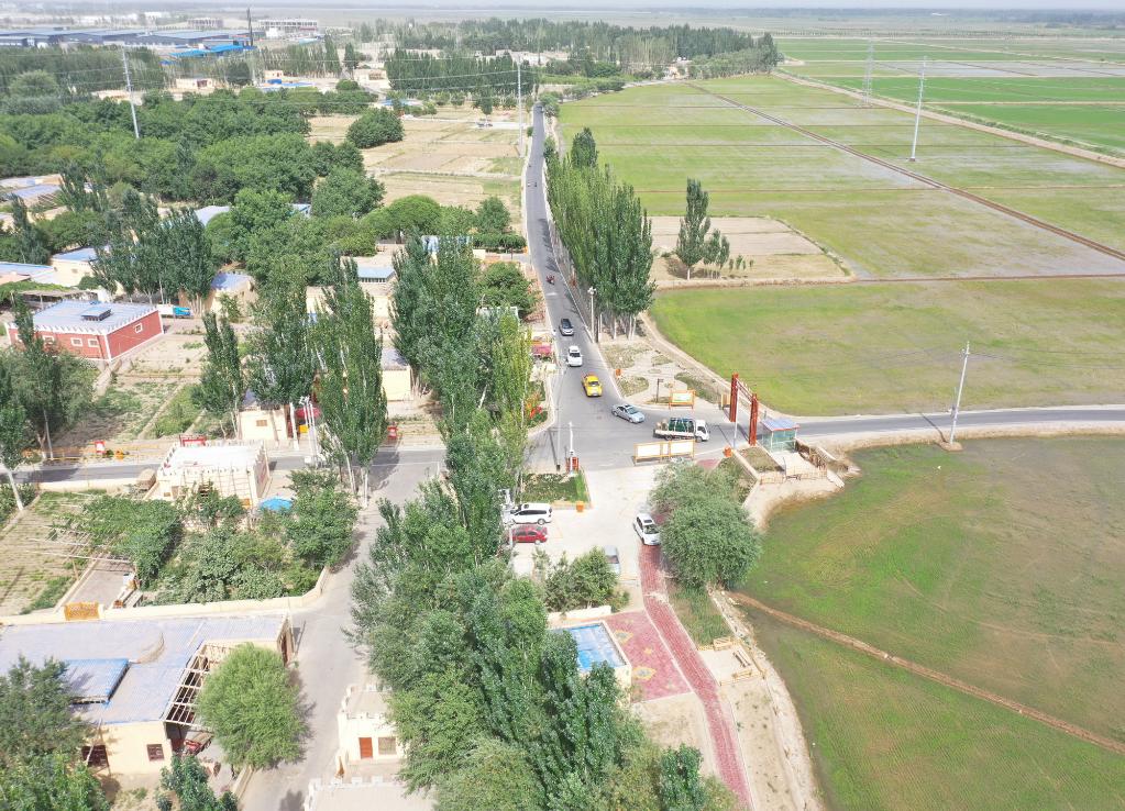 2022年6月,夏日里的新疆和田縣稻香村局部航拍景象。