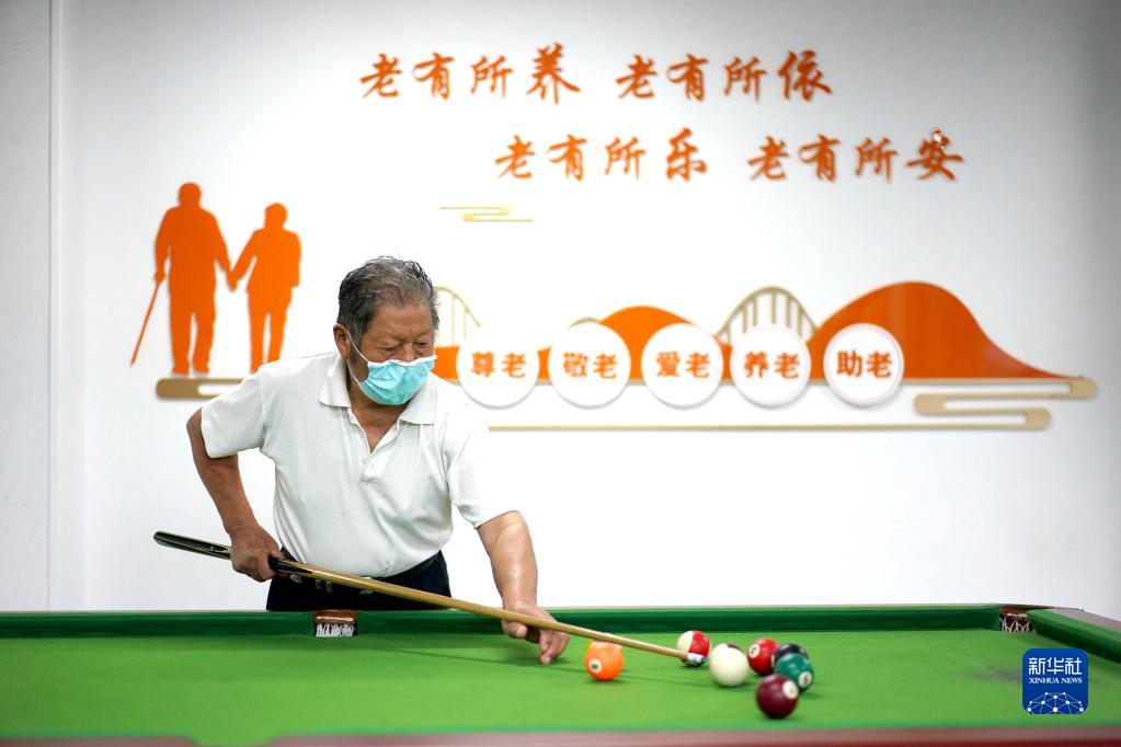 江蘇省張家港市永聯(lián)村的村民在打臺(tái)球娛樂(2022年7月16日攝)。新華社記者 季春鵬 攝