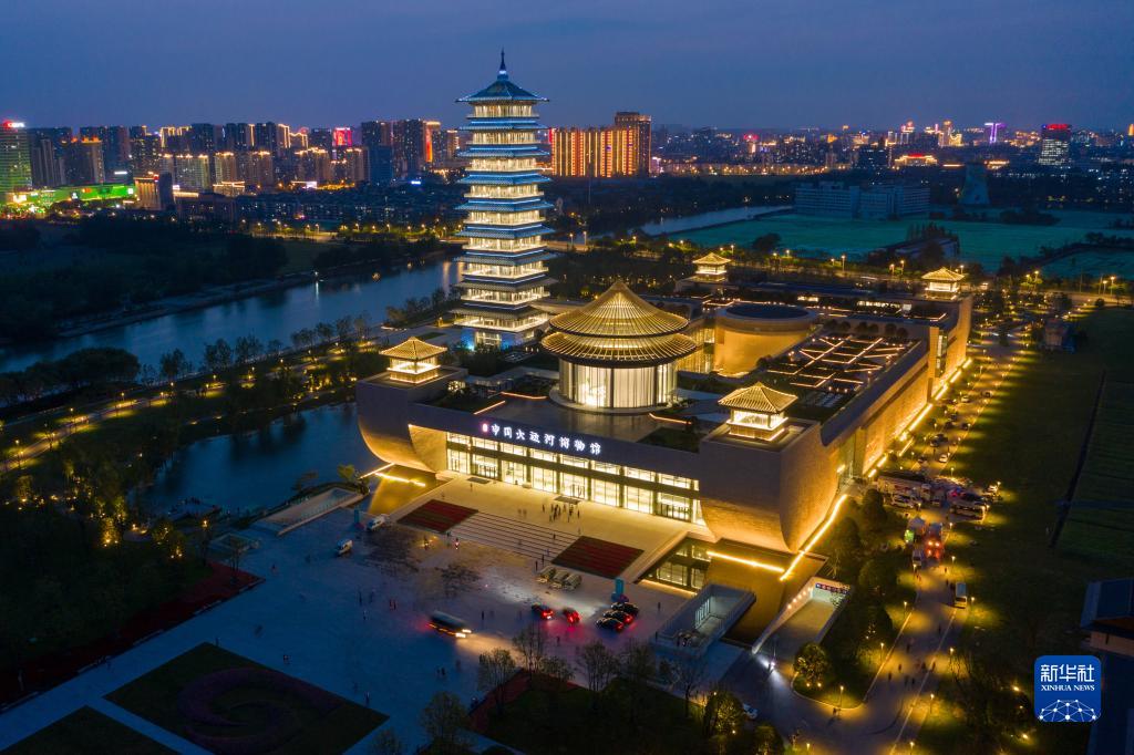 這是在江蘇省揚(yáng)州市拍攝的中國大運(yùn)河博物館夜景(2021年6月15日攝,無人機(jī)照片)。新華社記者 李博 攝