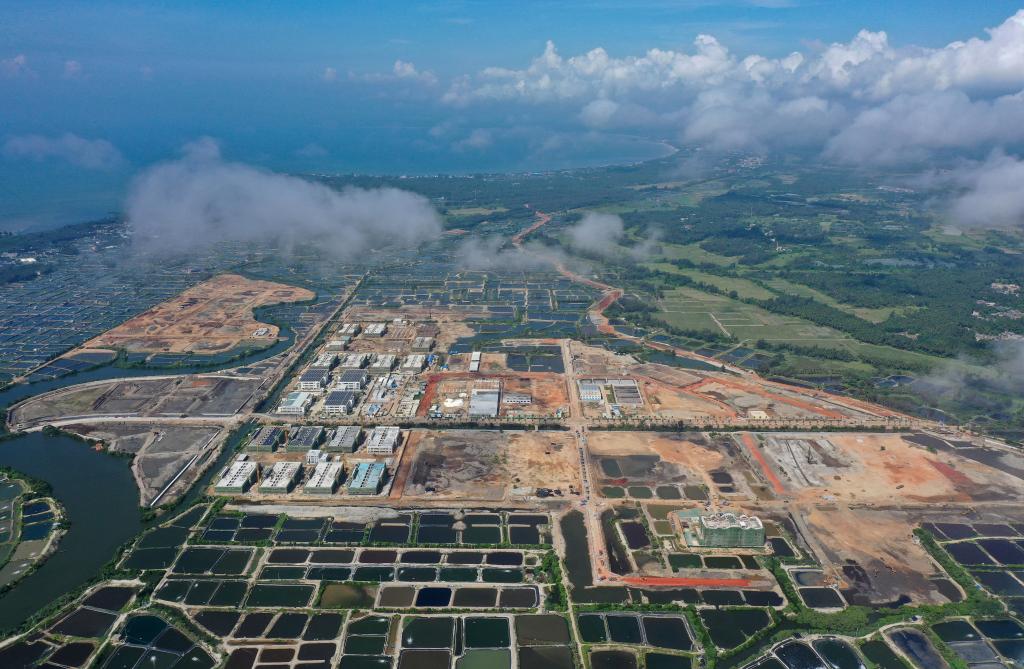 這是正在建設(shè)中的文昌馮家灣現(xiàn)代化漁業(yè)產(chǎn)業(yè)園(無人機(jī)照片)。新華社記者郭程 攝