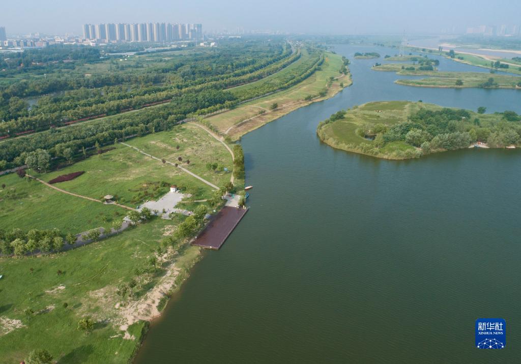 這是2022年7月31日拍攝的渭河西安段風(fēng)光(無人機(jī)照片)。新華社記者 張博文 攝