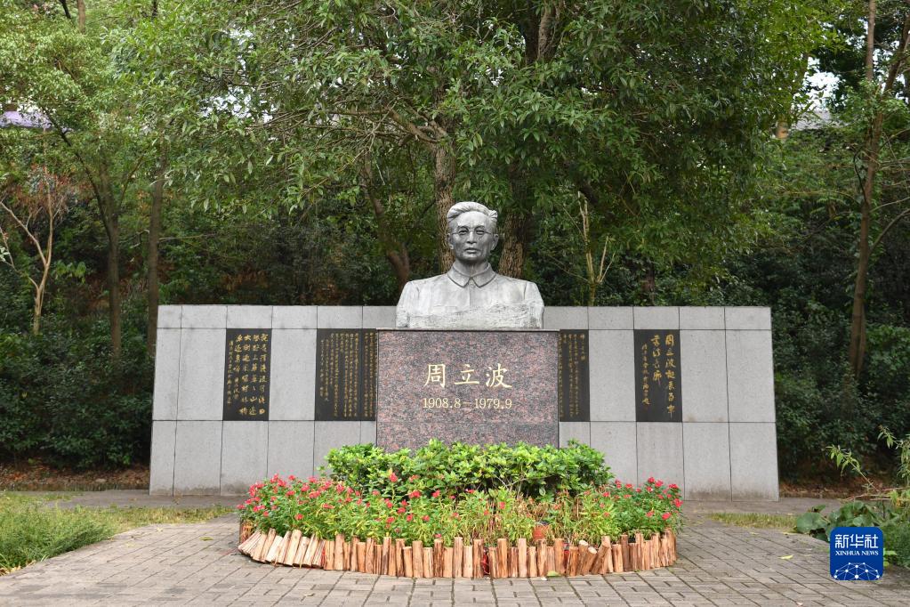 這是2022年9月8日在湖南省益陽(yáng)市謝林港鎮(zhèn)清溪村拍攝的周立波塑像。新華社記者 陳振海 攝
