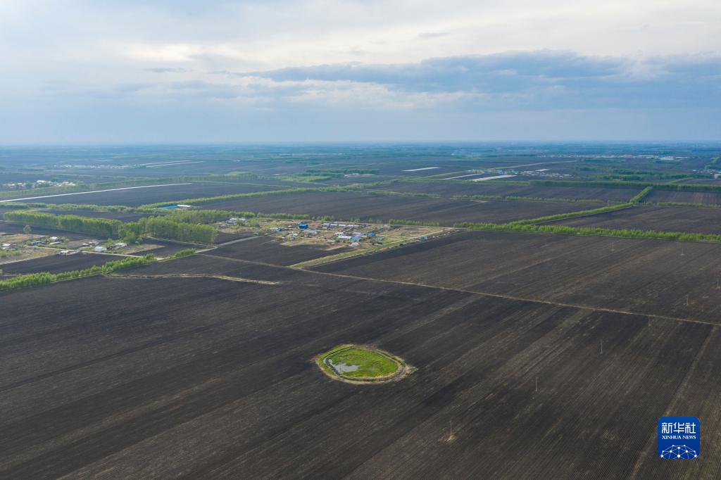 這是黑龍江省海倫市前進(jìn)鎮(zhèn)光榮村已完成播種的黑土耕地(無人機(jī)照片,2022年5月23日攝)。新華社記者 謝劍飛 攝
