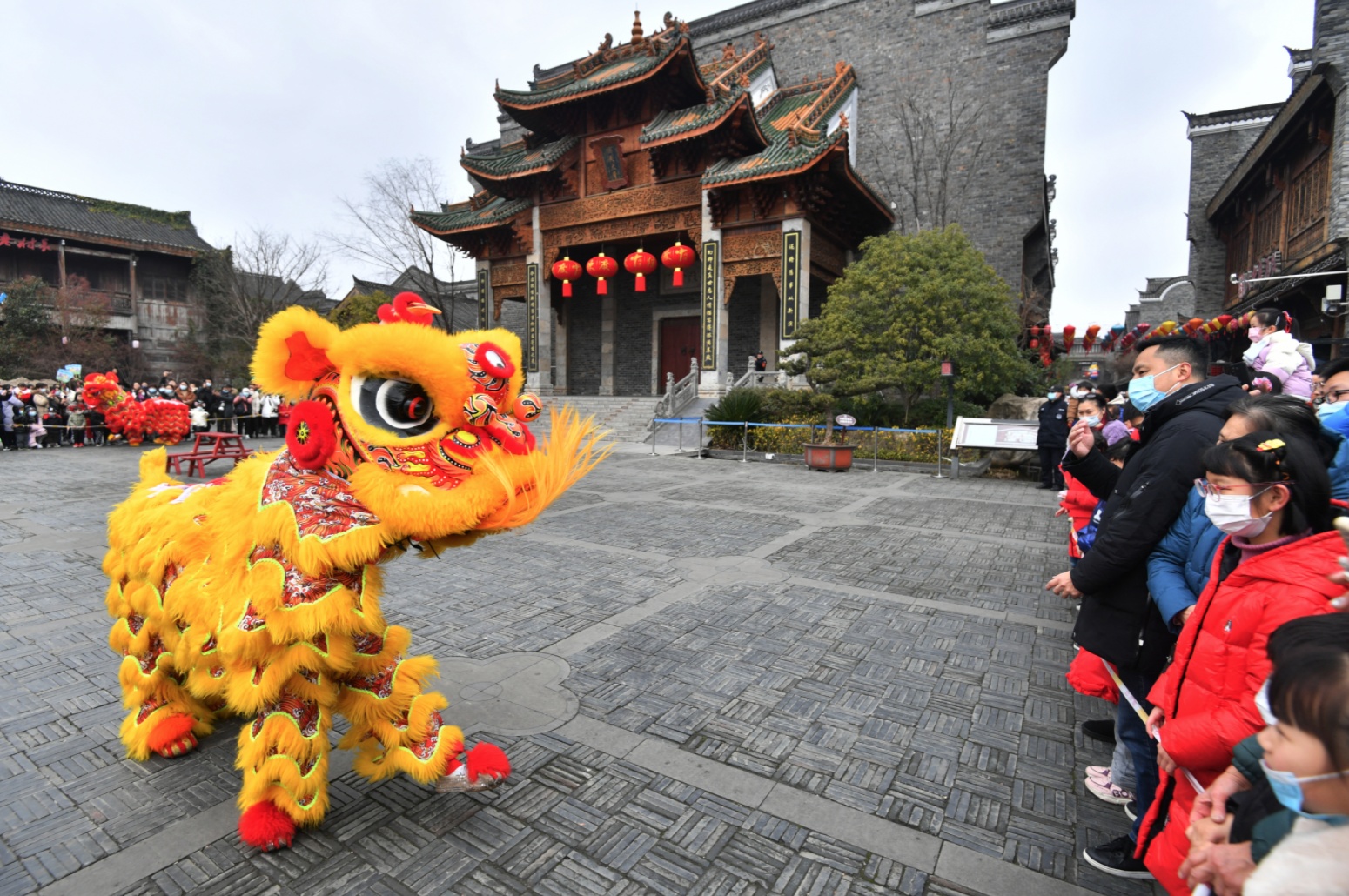 13日,漢口里的傳統(tǒng)南獅表演特別吸引人氣。長江日報記者喻志勇 攝