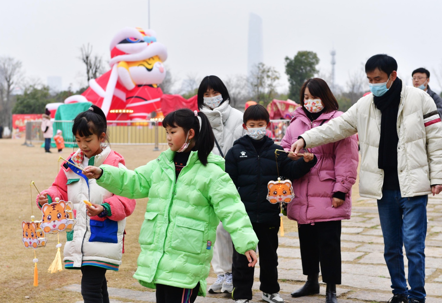 園博園里,小朋友挑著花燈游園。長江日報記者李永剛 攝