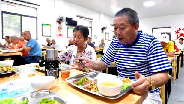近日,赤壁市蒲圻街道華舟社區(qū)幸福食堂,居民正在就餐。