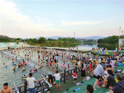 咸寧網(wǎng)訊(通訊員辜俊明瑤)8月5日,在咸安區(qū)高橋鎮(zhèn)高橋村大堰口鄉(xiāng)村客廳景區(qū),露天泳池人氣爆棚,許多游客紛紛來此游泳戲水...