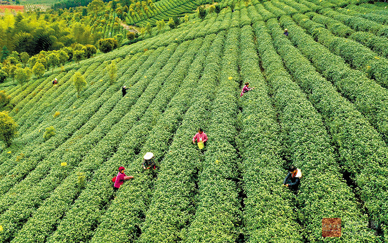 3月24日,咸安區(qū)汀泗橋鎮(zhèn)黃荊塘村茶園,當地農戶正在基地里搶采明前茶。