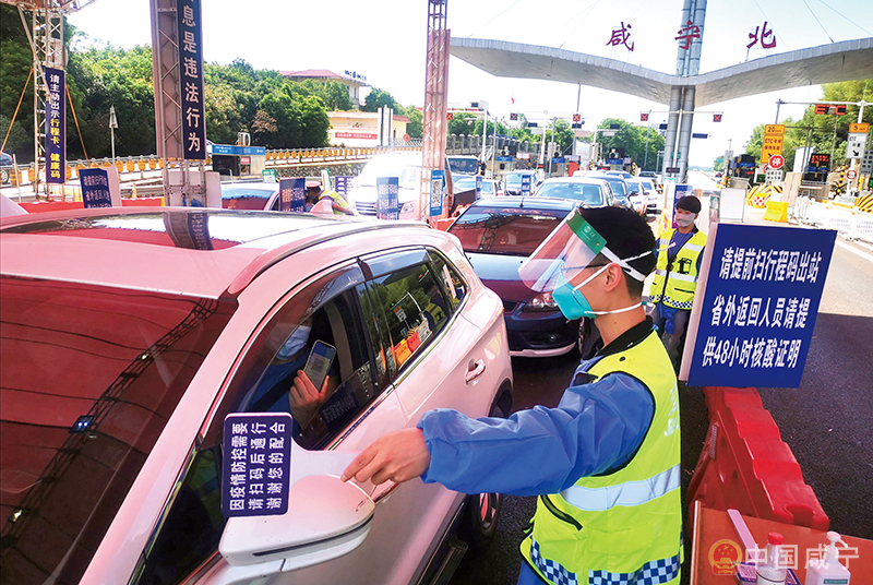 圖①:5月2日,京港澳高速咸寧北,市交通部門志愿者正在嚴(yán)查過往車輛人員的健康碼和行程碼。“五一”假期,我市各個(gè)高速路口志愿者24小時(shí)堅(jiān)守崗位,全力筑牢“外防輸入”第一道防線。