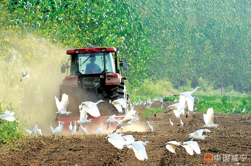 23日下午,嘉魚潘家灣金潤農(nóng)場平安洲種植基地,農(nóng)機正在田間翻耕平整土地,成群結(jié)隊的白鷺、八哥緊隨其后覓食,一幅生態(tài)和諧的秋播畫面跳躍眼前。