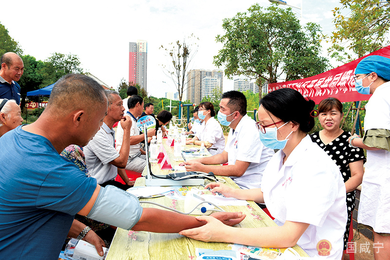 9月9日,咸安區(qū)浮山街道楊下社區(qū)大垅張巷廣場,市總工會(huì)、農(nóng)工黨湖北科技學(xué)院總支聯(lián)合組織愛心醫(yī)療隊(duì),在此開展共同締造健康義診活動(dòng)。