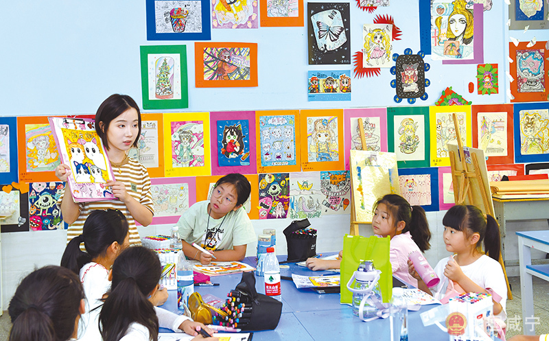 9月17日,咸安區(qū)青少年學(xué)生校外活動(dòng)中心教室,孩子們?cè)谡J(rèn)真聆聽(tīng)老師講解繪畫(huà)要領(lǐng)。