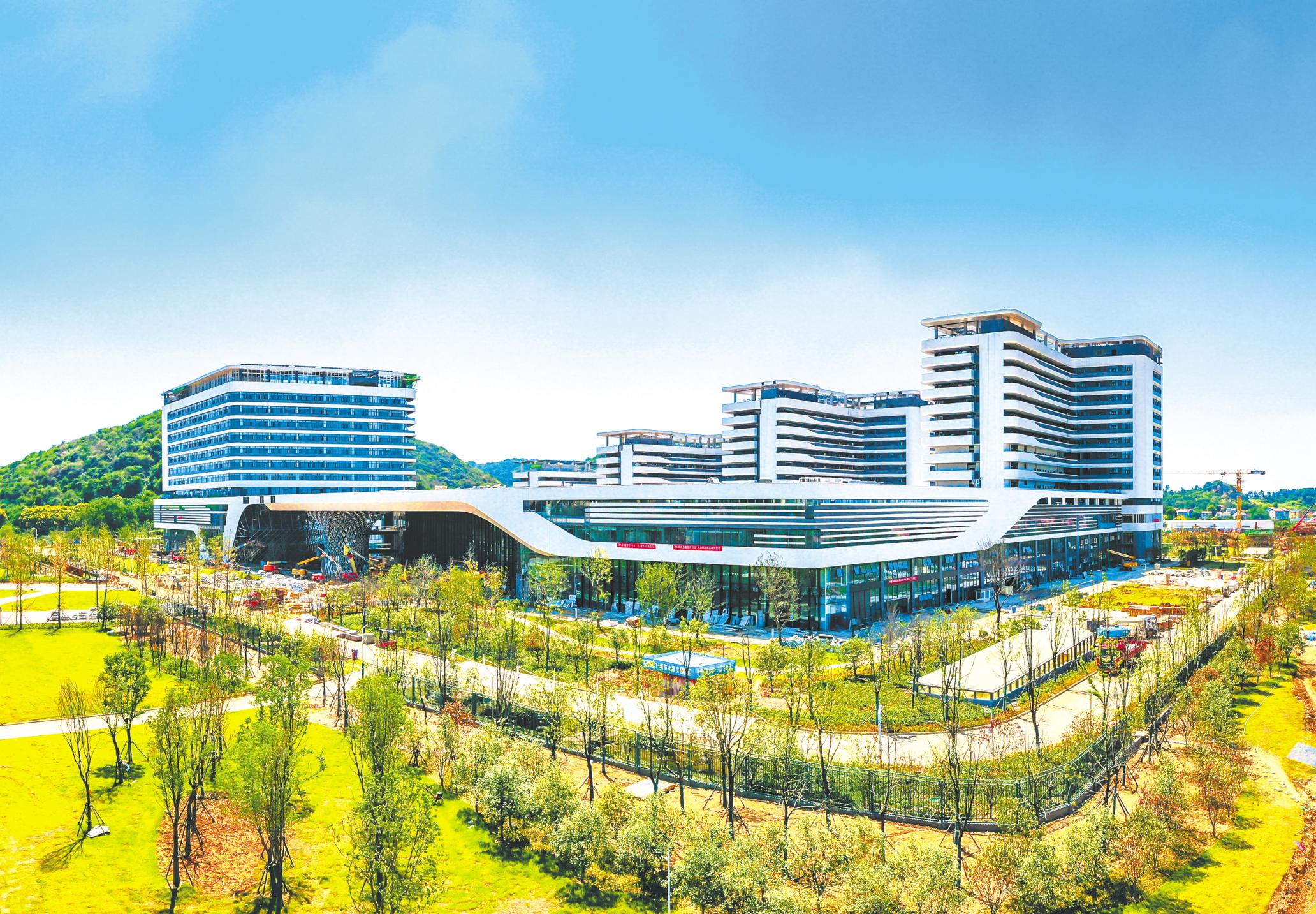 武漢規(guī)模最大的平戰(zhàn)結(jié)合醫(yī)院——江夏云景山醫(yī)院,總建筑面積25.2萬平方米,設(shè)計床位1000張;平時作為康養(yǎng)醫(yī)院運行,發(fā)生重大突發(fā)公共衛(wèi)生事件時,可迅速改建為傳染病醫(yī)院。(湖北日報全媒記者 柯皓 攝)