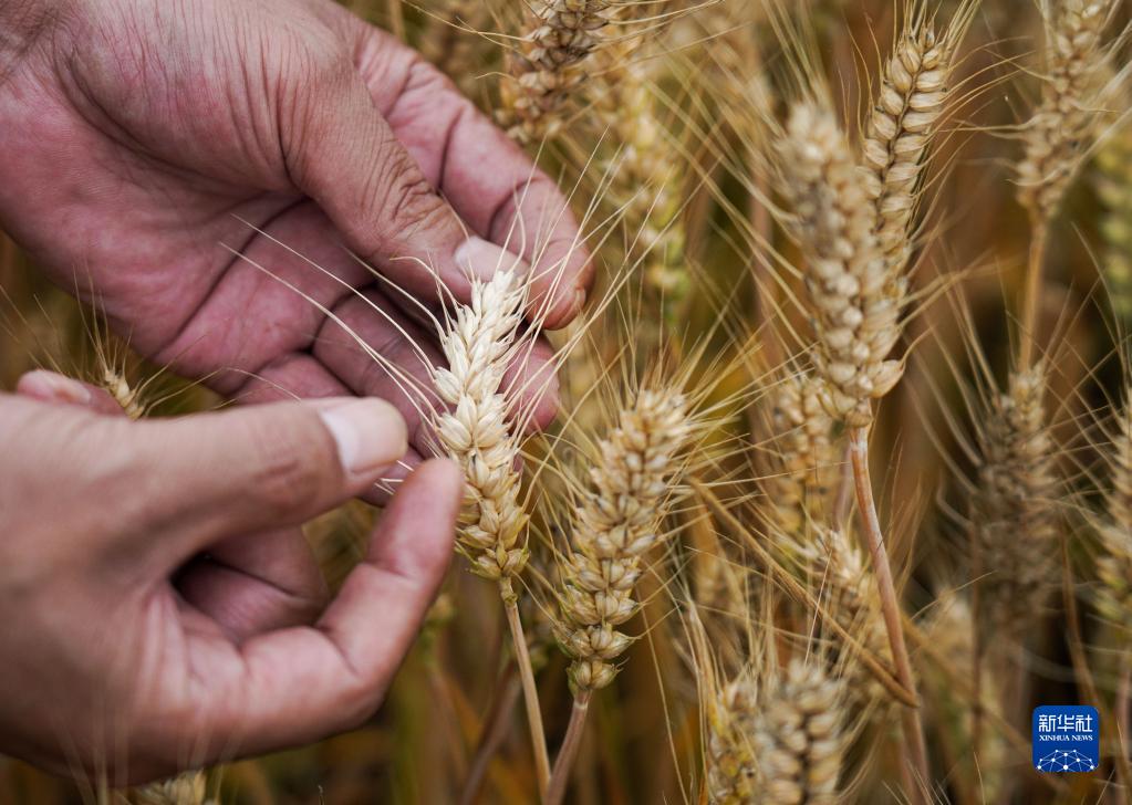 農(nóng)戶在河南南陽一處高標(biāo)準(zhǔn)農(nóng)田內(nèi)查看小麥長(zhǎng)勢(shì)(5月25日攝)。新華社記者 吳剛 攝