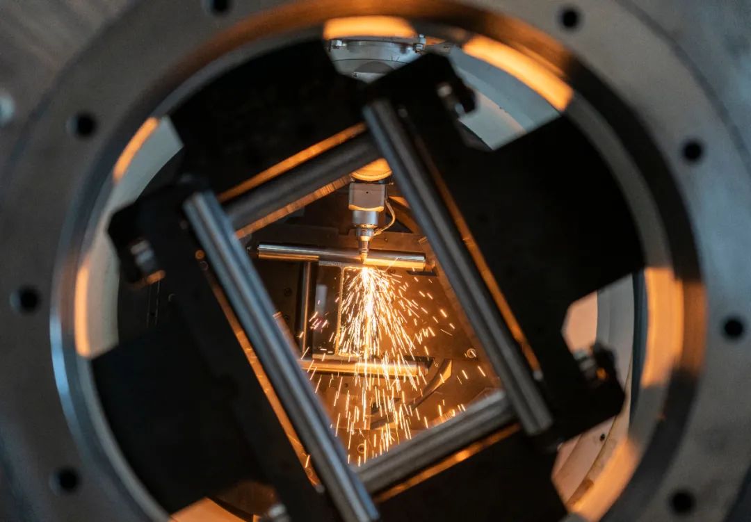 位于光谷科創(chuàng)大走廊的華工科技智能制造產(chǎn)業(yè)園,正在測(cè)試、校準(zhǔn)的智能激光切割機(jī)切割鋼板。來(lái)源:湖北日?qǐng)?bào)全媒記者 魏錸 攝