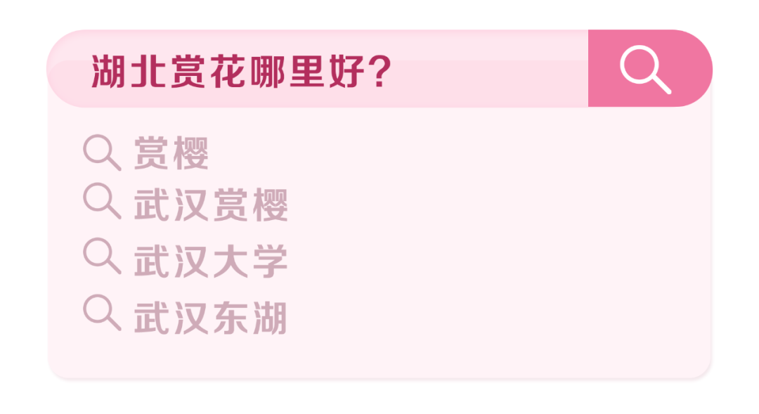 攜程數(shù)據(jù)顯示,2月至3月賞花類(lèi)度假產(chǎn)品,預(yù)訂量同比暴增880%;美團(tuán)數(shù)據(jù)顯示,近一周以來(lái),湖北省“賞花”關(guān)鍵詞搜索量同比增長(zhǎng)390%,其中,“東湖風(fēng)景區(qū)”熱度較高。