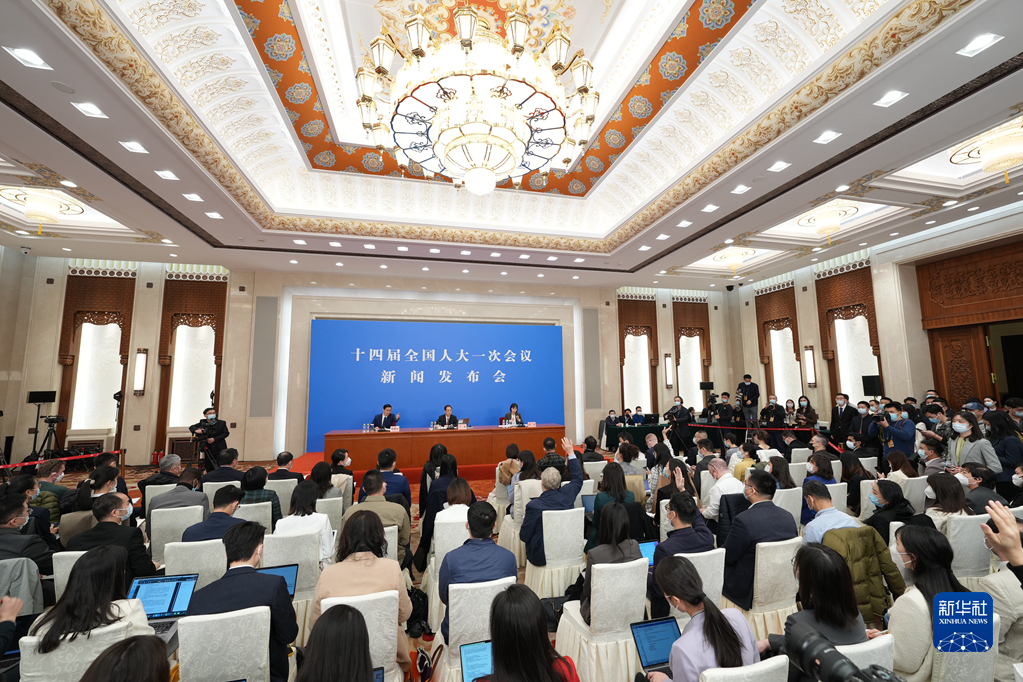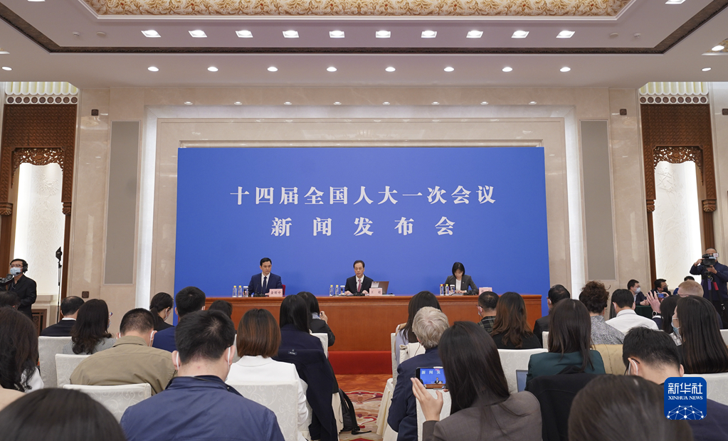 3月4日,十四屆全國(guó)人大一次會(huì)議在北京人民大會(huì)堂舉行新聞發(fā)布會(huì)。大會(huì)發(fā)言人王超就會(huì)議議程和人大有關(guān)工作回答中外記者提問(wèn)。新華社記者 邢廣利 攝