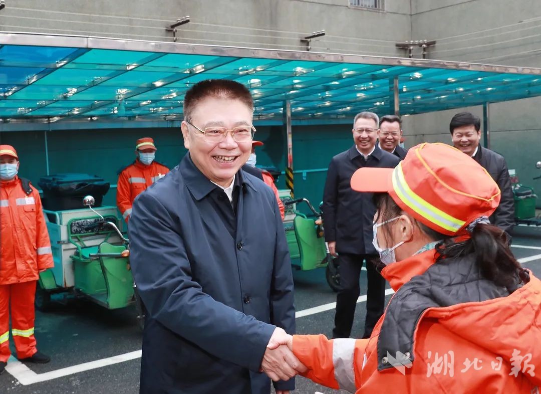 王蒙徽、王忠林來(lái)到武昌區(qū)城管局二橋清潔隊(duì),看望慰問(wèn)環(huán)衛(wèi)工人,祝大家新春愉快、闔家幸福。省領(lǐng)導(dǎo)關(guān)切詢問(wèn)環(huán)衛(wèi)工人們的工作生活情況,感謝大家的辛勤勞動(dòng),叮囑有關(guān)方面切實(shí)關(guān)心關(guān)愛(ài)一線環(huán)衛(wèi)工人,幫助解決實(shí)際困難。