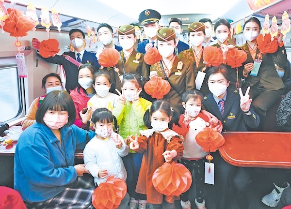 2月2日,在武鐵武漢客運(yùn)段值乘的武漢開往廣州方向的G885次旅客列車上,火紅的燈籠、多彩的字謎、喜慶的福字等裝飾掛滿車廂,乘務(wù)員為旅客們送上舞蹈表演和元宵節(jié)祝福。(通訊員 徐媛媛 王旭)