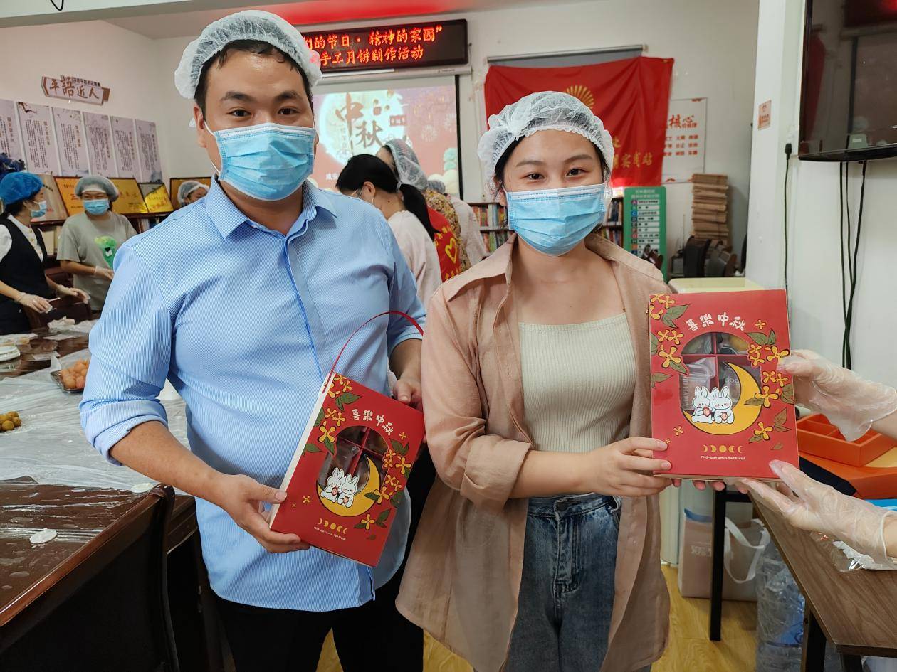 雖然大部分居民都是第一次動手做月餅,但出品都有模有樣的,當看到一個個漂亮的冰皮月餅從自己手中誕生時,大家都異常興奮和滿足。
