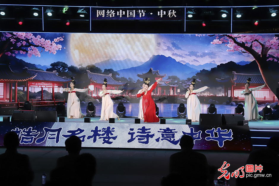 9月27日晚,“皓月名樓 詩意中華”2023年網(wǎng)絡(luò)中國節(jié)·中秋賞月直播活動現(xiàn)場,表演舞蹈《秋月云影》》。(喻云亮攝/光明圖片)