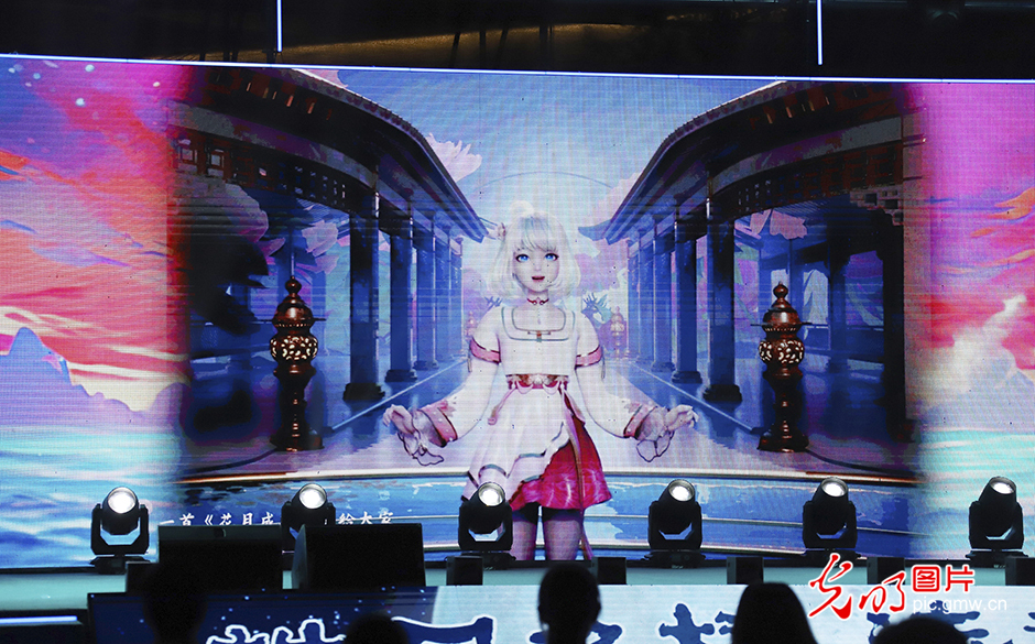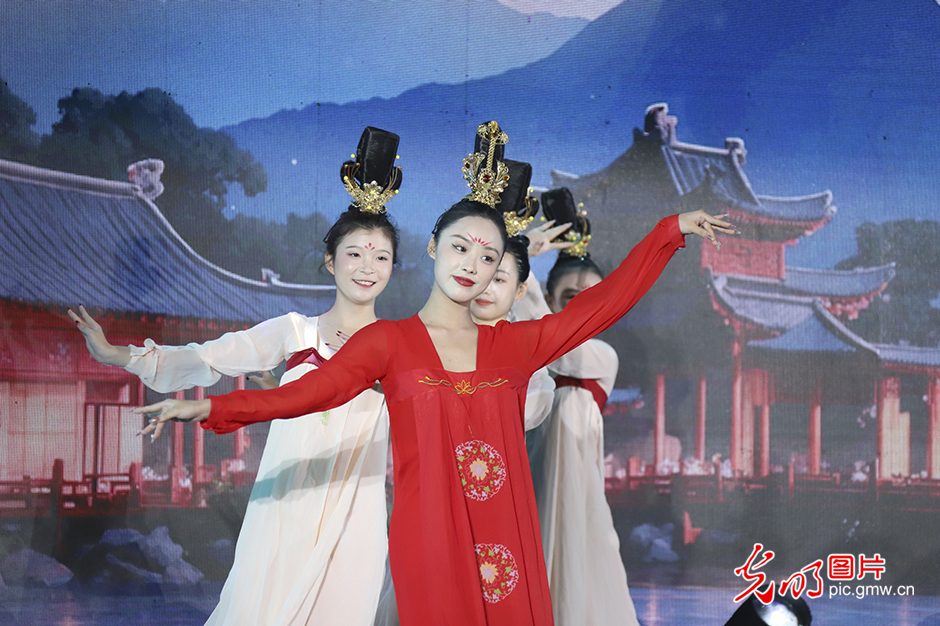 9月27日晚,“皓月名樓 詩意中華”2023年網(wǎng)絡(luò)中國節(jié)·中秋賞月直播活動現(xiàn)場,星瞳表演國風(fēng)歌舞《花月成雙》。(楊紫韜攝/光明圖片)