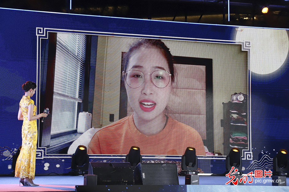 9月27日晚,“皓月名樓 詩意中華”2023年網(wǎng)絡(luò)中國節(jié)·中秋賞月直播活動現(xiàn)場連線海外留學(xué)生。(楊紫韜攝/光明圖片)