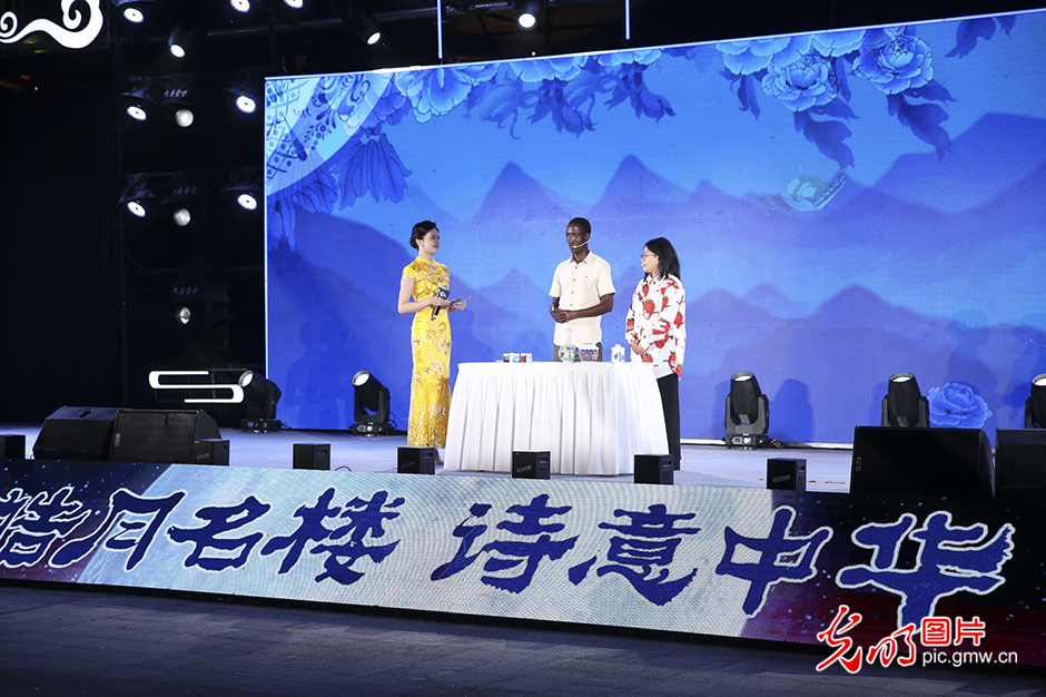 9月27日晚,“皓月名樓 詩意中華”2023年網(wǎng)絡(luò)中國節(jié)·中秋賞月直播活動現(xiàn)場,羅伯特(烏干達)石家恩(洪都拉斯)文化分享《我的中國節(jié)》。(喻云亮攝/光明圖片)