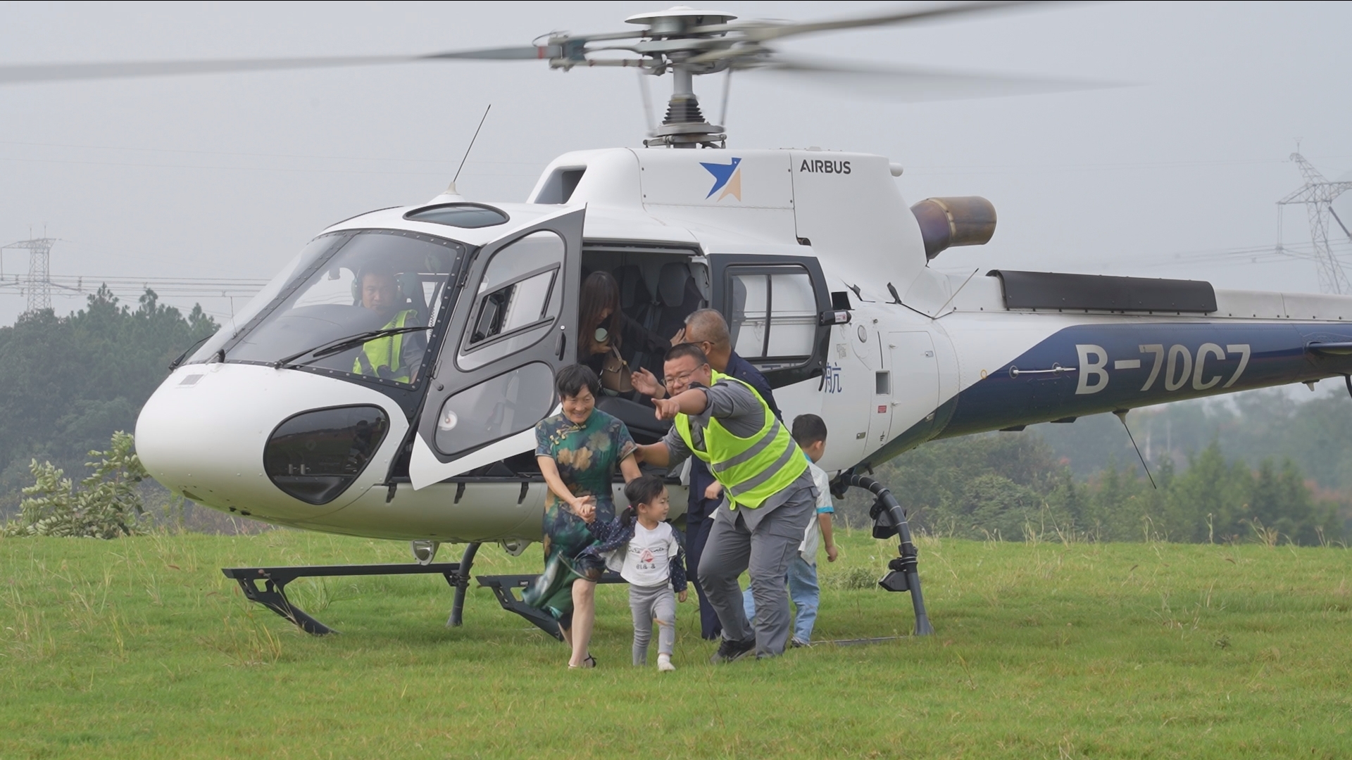 9月29日,咸寧嘉魚縣蜜泉湖景區(qū)的“松鼠”空客H125直升機從景區(qū)廣場平穩(wěn)降落,游客從空中俯瞰咸寧美景,增加了別樣的旅游體驗。